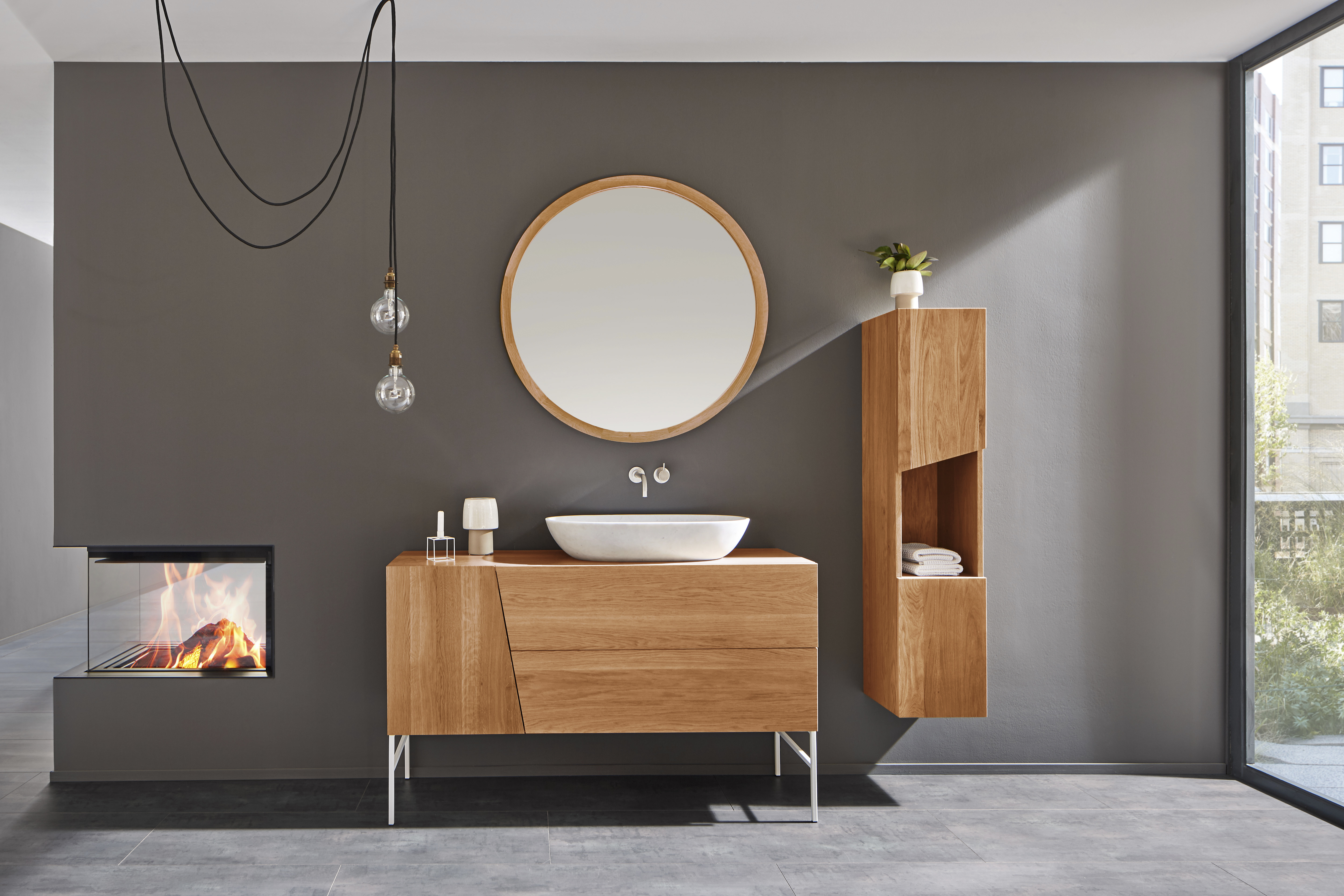 Absolut hochwertiges Badmöbel aus der Kollektion von Lapidispa®. Zeitlose, schöne Entwürfe der Designer, welche durch eine gelungene Auswahl von warmen Materialien und Farben einen höchstmöglichen Wohlfühleffekt versprechen. Die lange Erfahrung des Herstellers spiegelt sich in der ausgezeichneten Qualität jedes einzelnen Möbelstückes wider. Bei den gezeigten Serien handelt es sich um Massivholzmöbel aus Eiche, welche mit mehreren Schichten Lack veredelt sind. Wer trotz bestmöglicher Verarbeitung und langjähriger Erfahrung im Bereich Massivholzmöbel skeptisch gegenüber einer Holzoberfläche im Nassbereich ist, kann optional eine Platte aus Corian® gewählt wählen.