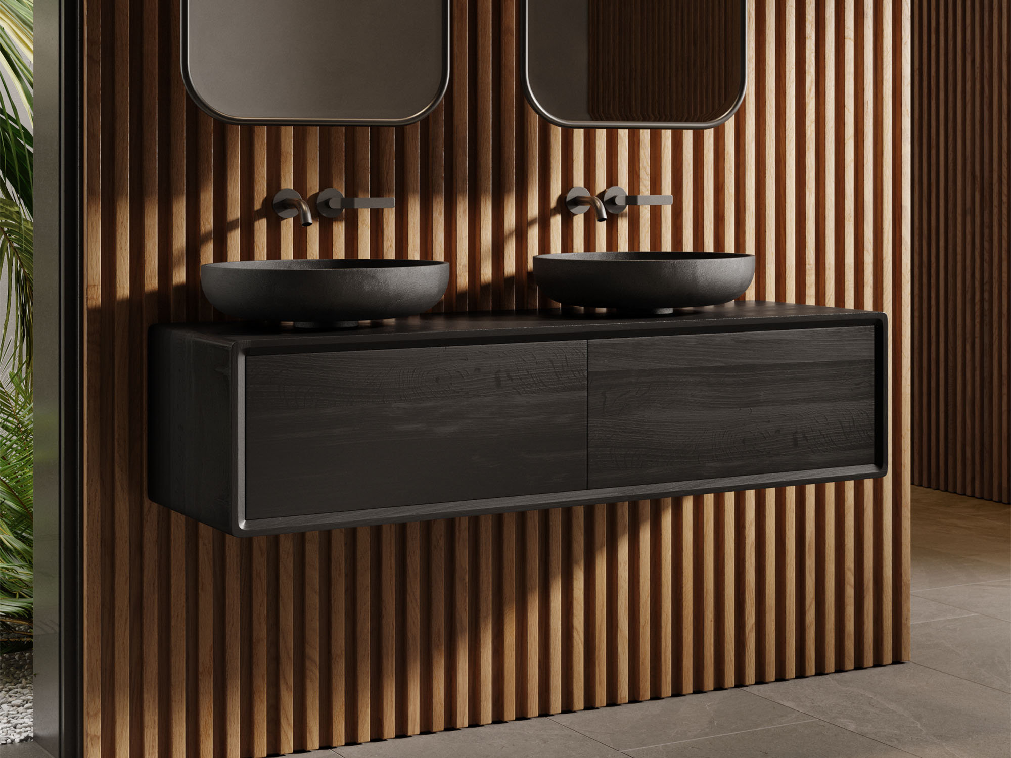 "Nica" Waschtischunterschrank aus Massivholz, im "Nero Finish" Stil (schwarz gebeizt) von Lapidispa®