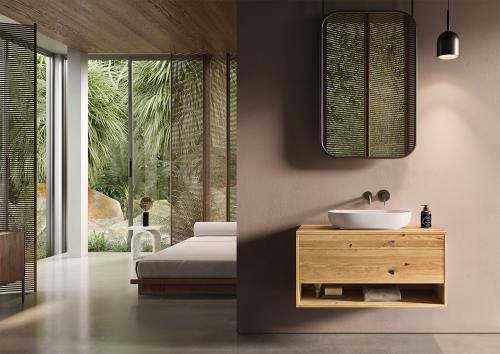Seit 2007 spezialisiert auf Bad-Unterschränke aus Massivholz – Lapidispa® unterstützt Sie bei der Planung Ihres Traumbadmöbel und hilft tatkräftig mit dem Know-how von Tischlern und Badexperten. Bei der aktuellen Kollektion handelt es sich um Waschtischunterschränke aus massiver Eiche und europäischen Nussbaum, welche dann mit mehreren Schichten Lack speziell für den Nassbereich veredelt werden. Optional bietet Ihnen das norddeutsche Designlabel gegen Aufpreis eine Oberflächen-Veredelung aus Corian®, oder Keramik, an. Wer den angesagten Look von Marmor in seinem zu Hause möchte, wird die Veredelung mit einer hauchdünnen 6 mm Keramik-Oberfläche in Steinoptik lieben. „Genero“ mit Keramikveredelung finden Sie hier.