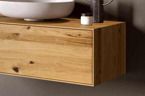 Zeitlose, schöne Entwürfe der Designer, welche durch eine gelungene Auswahl von warmen Materialien und Farben einen höchstmöglichen Wohlfühleffekt versprechen. Die lange Erfahrung des Herstellers spiegelt sich in der ausgezeichneten Qualität jedes einzelnen Möbelstückes wieder. Wer trotz bestmöglicher Verarbeitung und langjähriger Erfahrung im Bereich Massivholzmöbel skeptisch gegenüber einer Holzoberfläche im Nassbereich ist, kann optional eine Platte aus Corian® gewählt wählen.