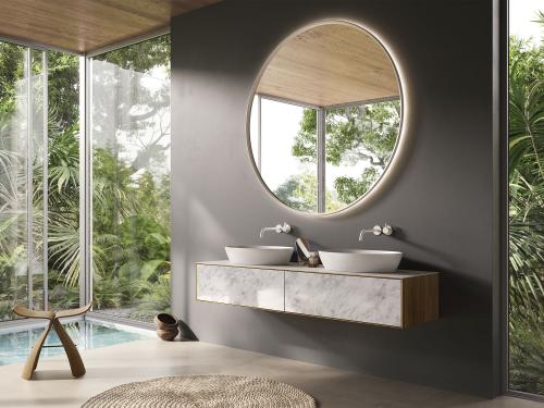 Zeitlose, schöne Entwürfe der Designer, welche durch eine gelungene Auswahl von warmen Materialien und Farben einen höchstmöglichen Wohlfühleffekt versprechen. Die lange Erfahrung des Herstellers spiegelt sich in der ausgezeichneten Qualität jedes einzelnen Möbelstückes wider. Wer trotz bestmöglicher Verarbeitung und langjähriger Erfahrung im Bereich Massivholzmöbel skeptisch gegenüber einer Holzoberfläche im Nassbereich ist, kann optional eine Platte aus Corian® gewählt wählen.
